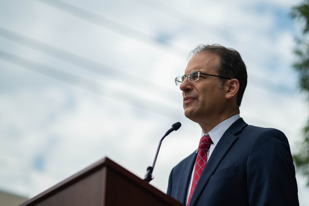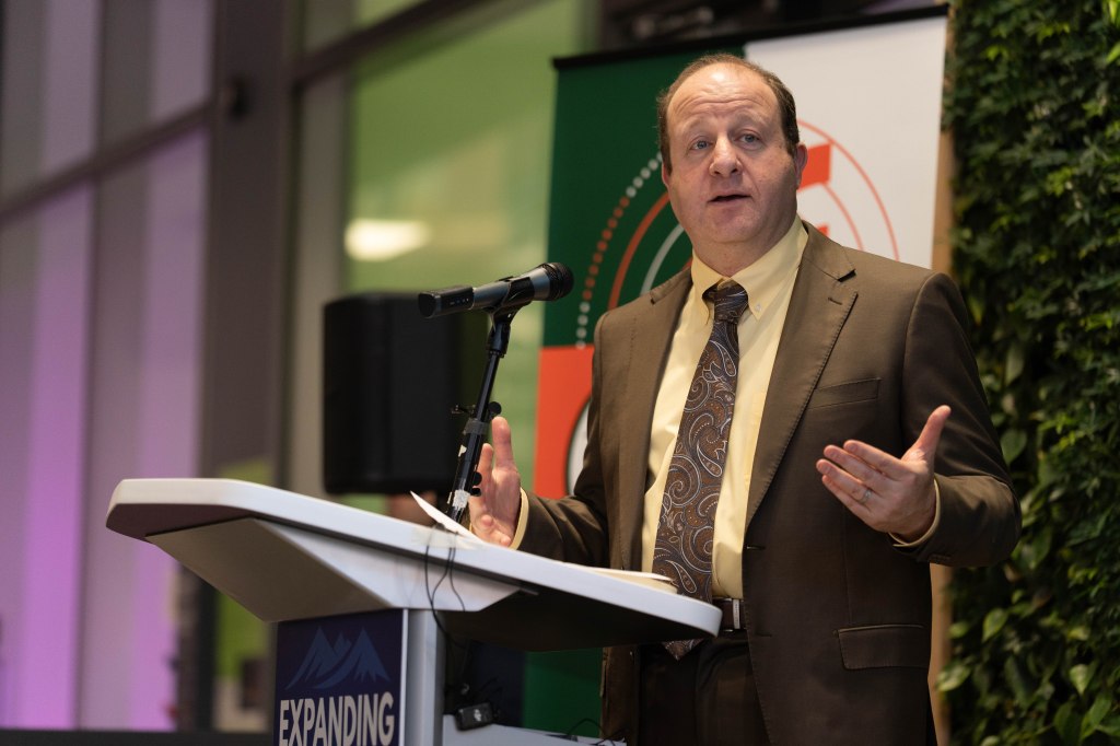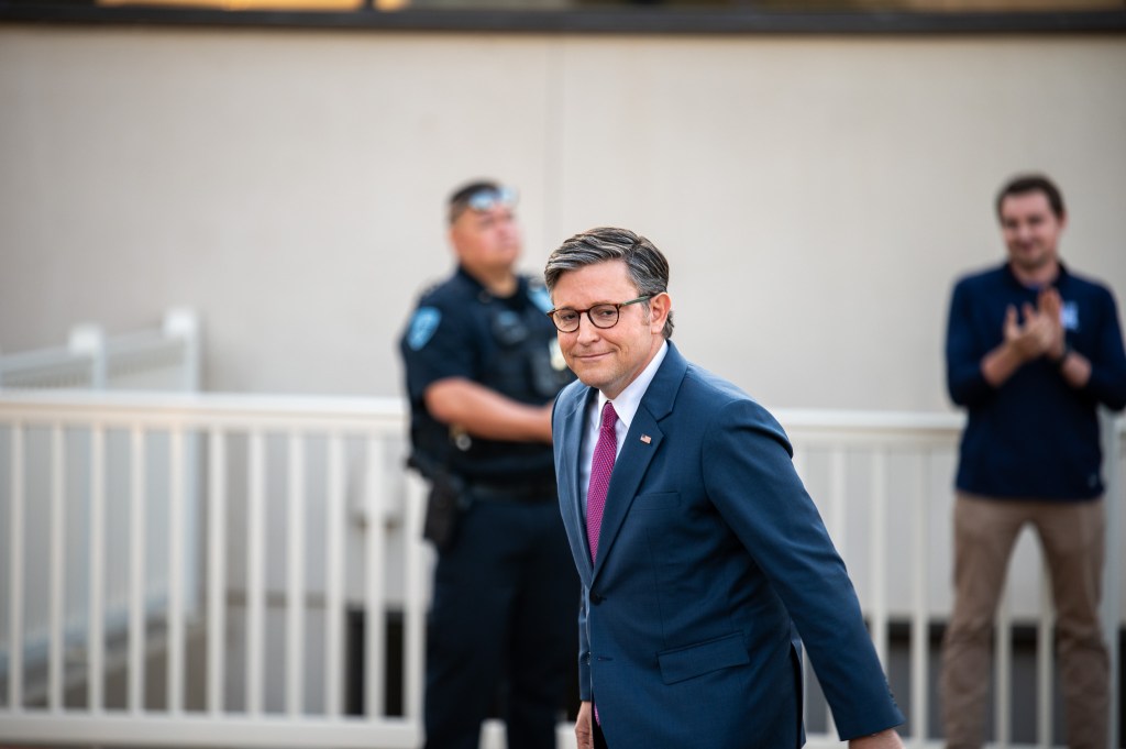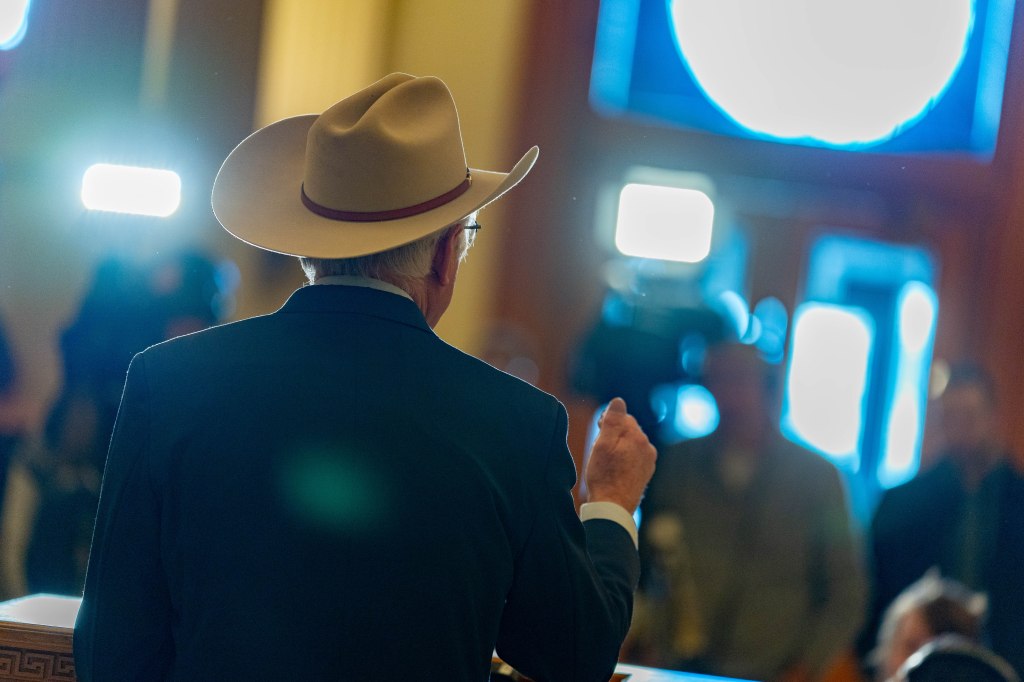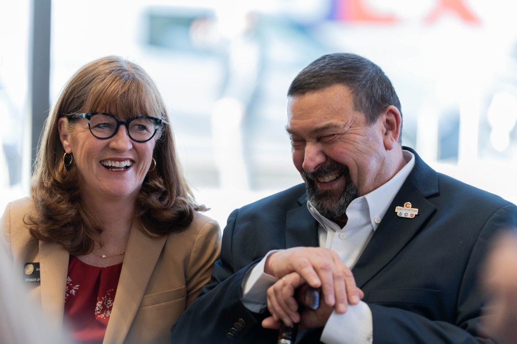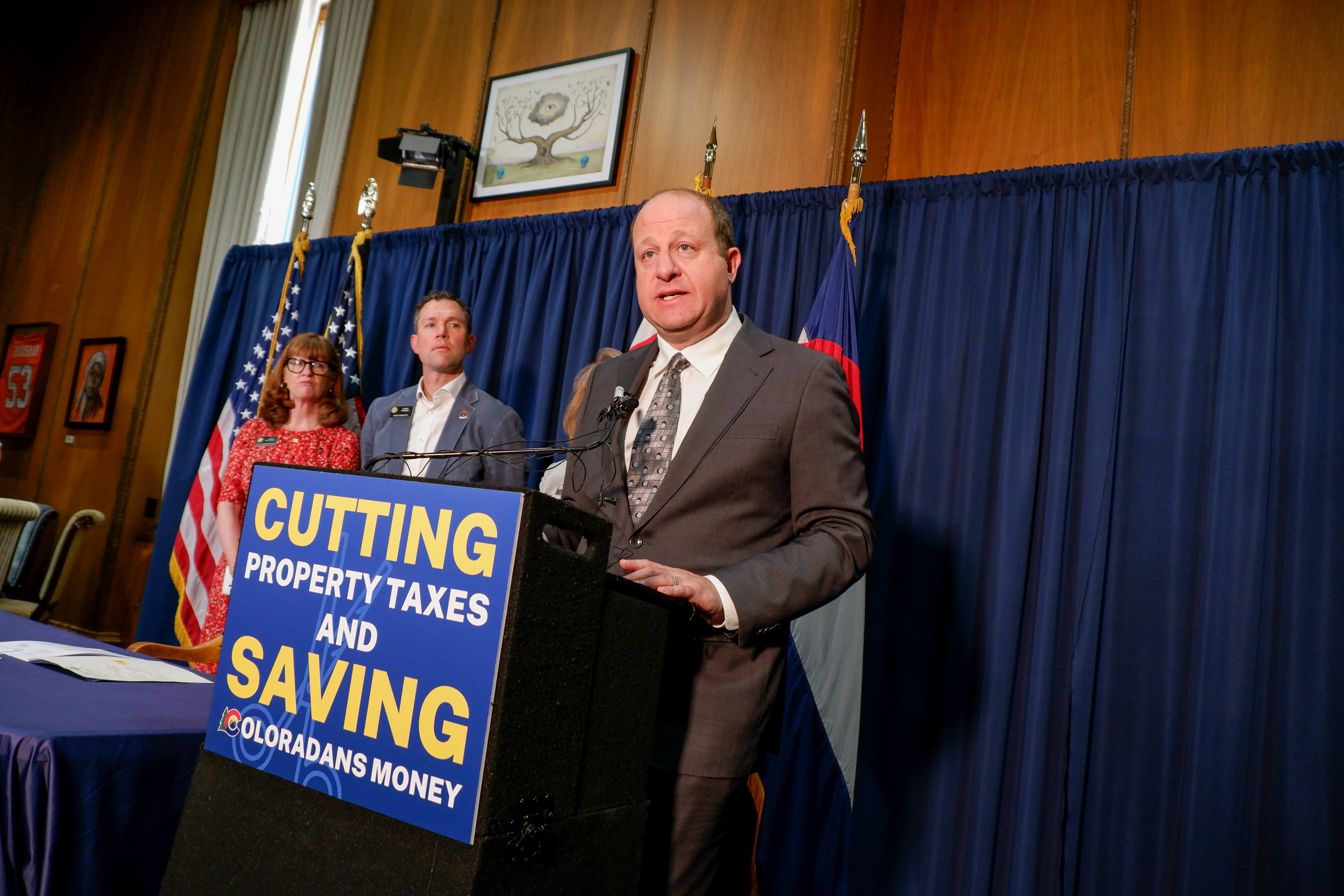 U.S. Rep. Lauren Boebert, R-Windsor, checks out a T-shirt before former President Donald Trump speaks at a rally in Aurora, Colorado, on Friday, Oct. 11, 2024. (Jesse Paul, The Colorado Sun)