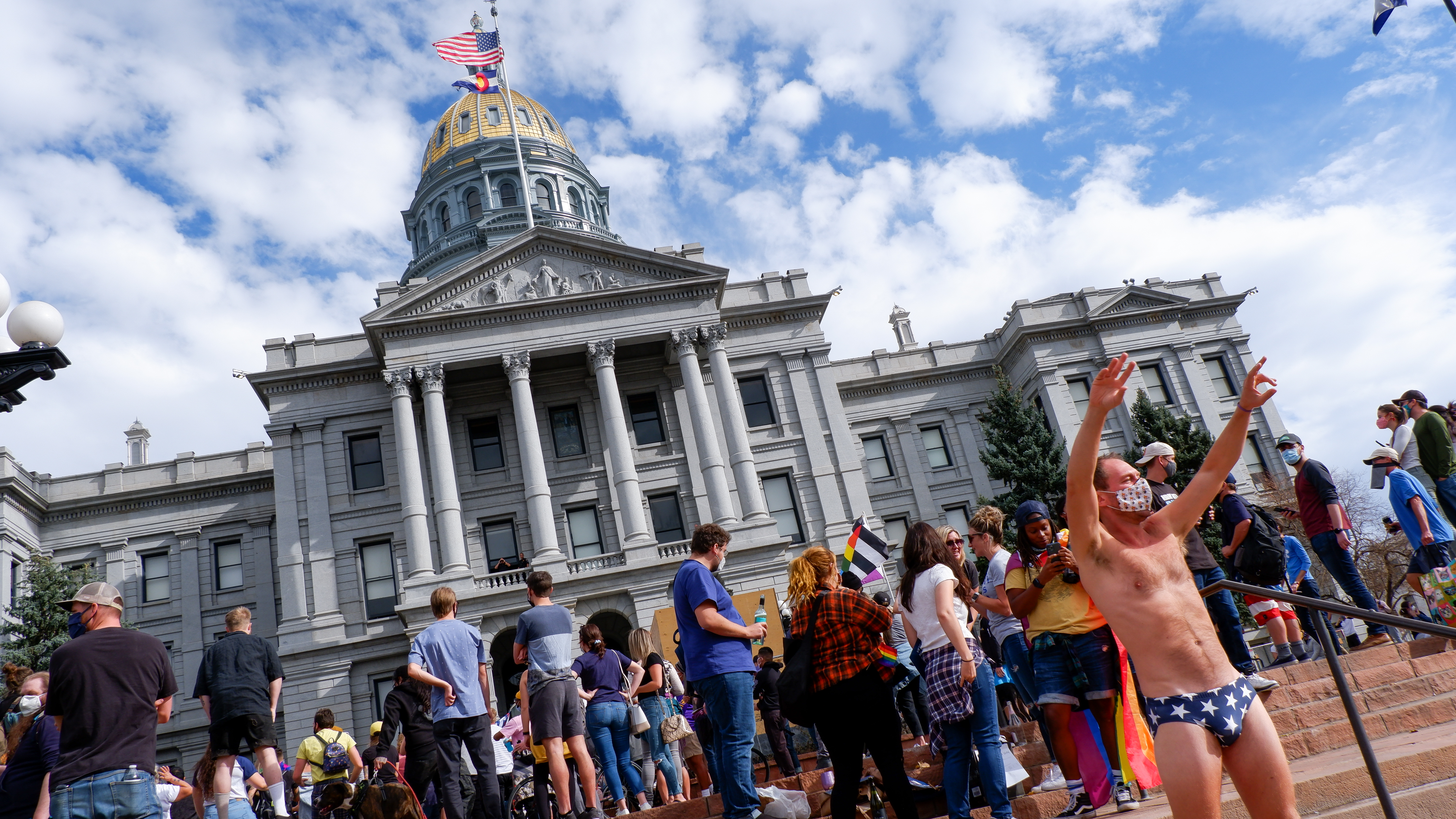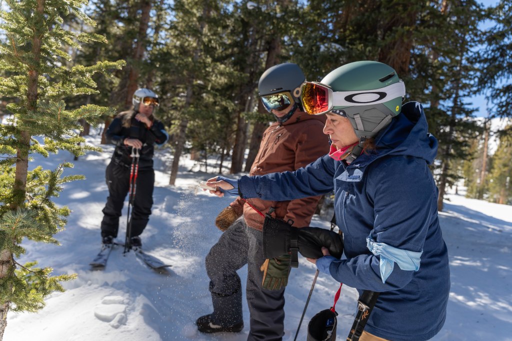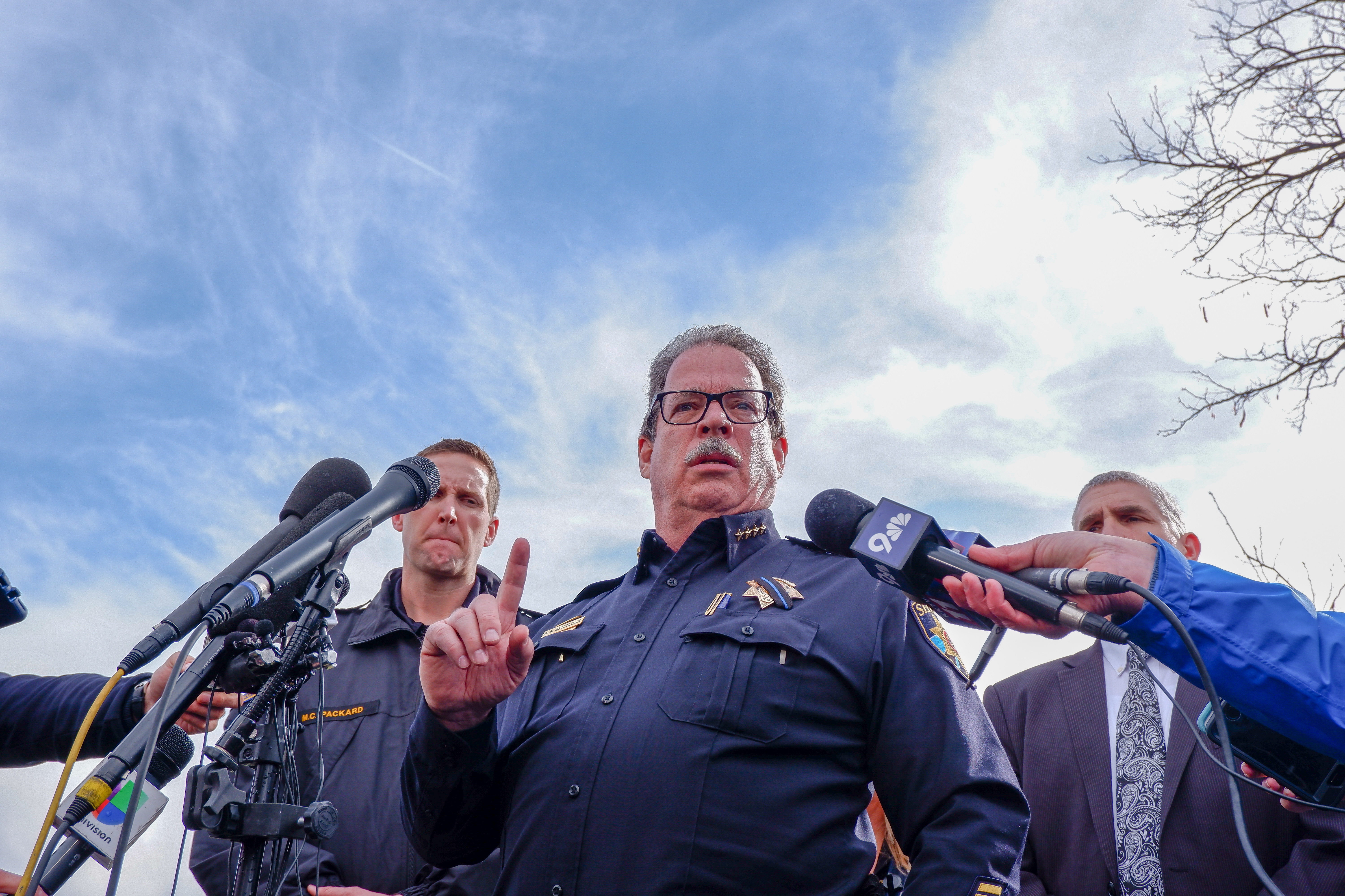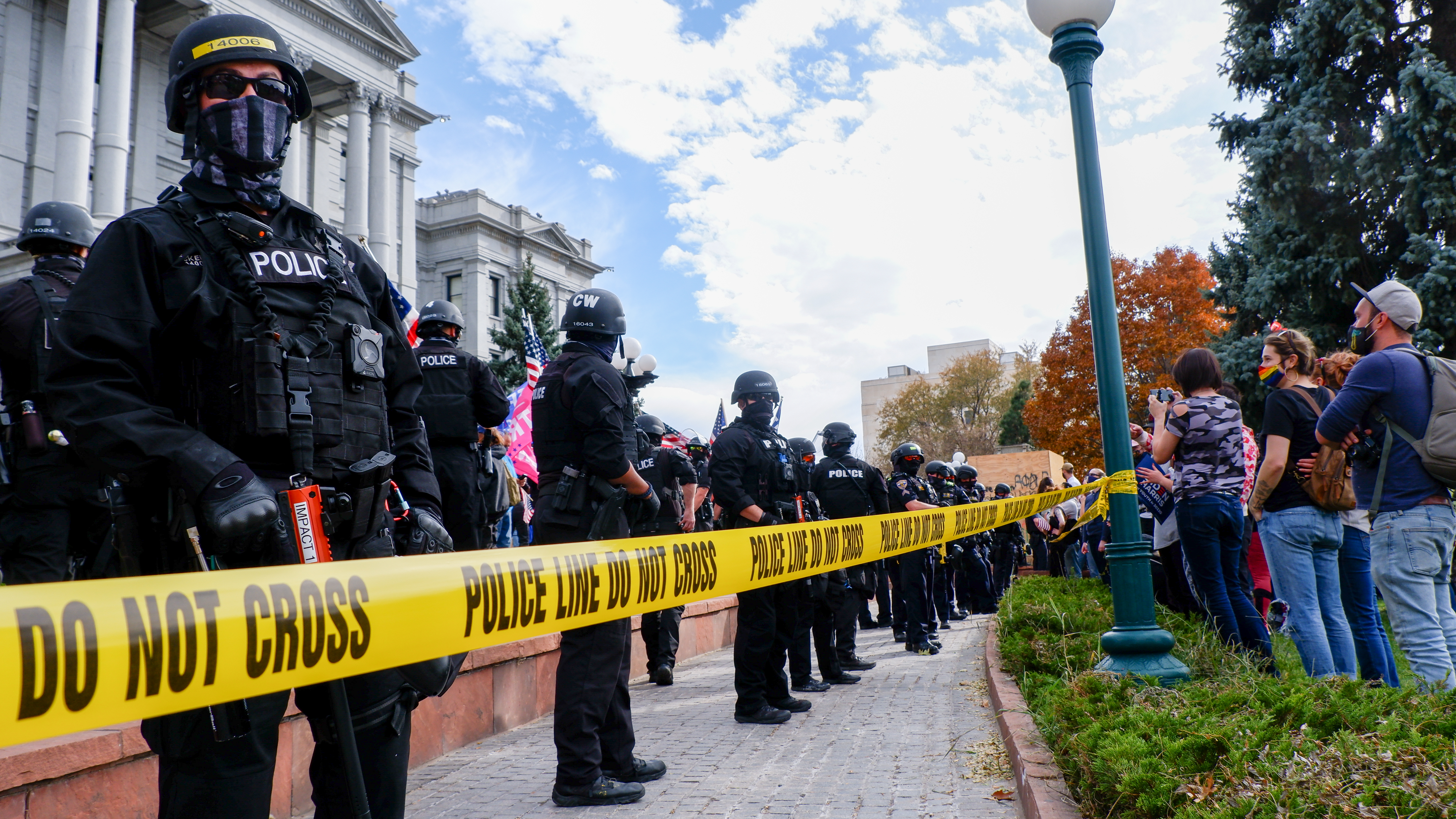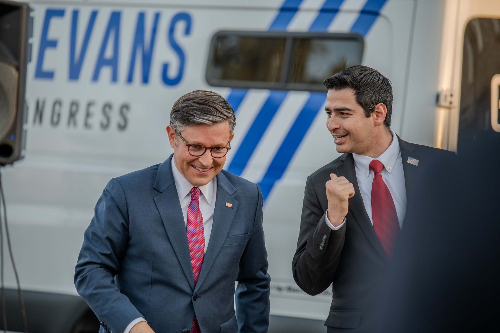 U.S. Rep. Lauren Boebert, R-Windsor, checks out a T-shirt before former President Donald Trump speaks at a rally in Aurora, Colorado, on Friday, Oct. 11, 2024. (Jesse Paul, The Colorado Sun)